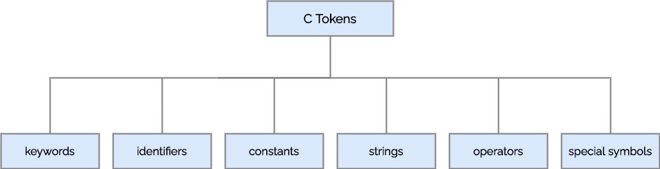 The smallest individual units in a C program is known as C tokens. C has six types of tokens as shown in the figure.