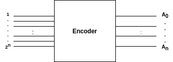 An encoder is a combinational circuit that performs reverse function of a decoder. It accepts 2n input and produces output in n output lines. This process of generating codes based on the values of input lines is called encoding.
