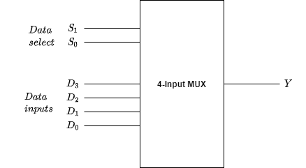 A 4-input multiplexer has two data-selector lines a combination of which are used to select any of the four data-input lines.