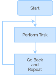 A continuous loops repeats a task continuously. It is setup by using unconditional jump instruction. A program with a continuous loop will keep repeating tasks until the system is reset as shown in the flowchart.